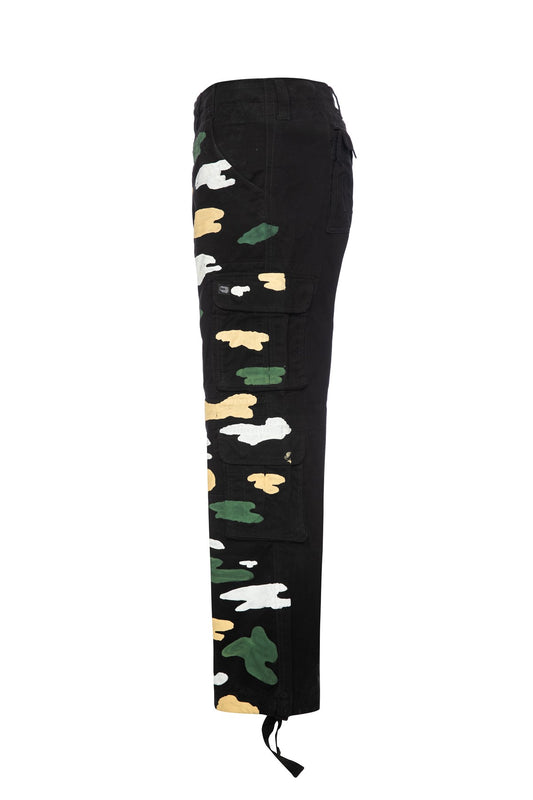 Sold outCUSTOM PATTERNED CARGO BLACK PANT